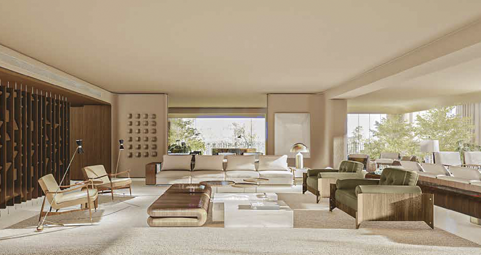 O apartamento de 753m2 fica no Edifício Tuias, e o de 400m2 fica no Edifício Zíneas.