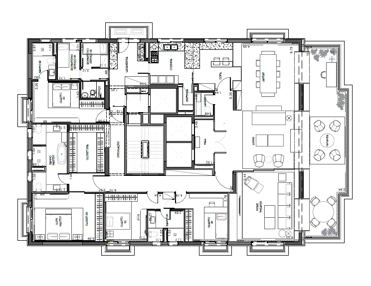 Localizados no empreendimento Parque Cidade Jardim, são duas opções de apartamentos para locação de longo prazo, de 400 e 753m2 com 4 suítes, entregues decorados, com projeto de interiores por Estúdio Obra Prima, mobiliados e com enxoval completo.